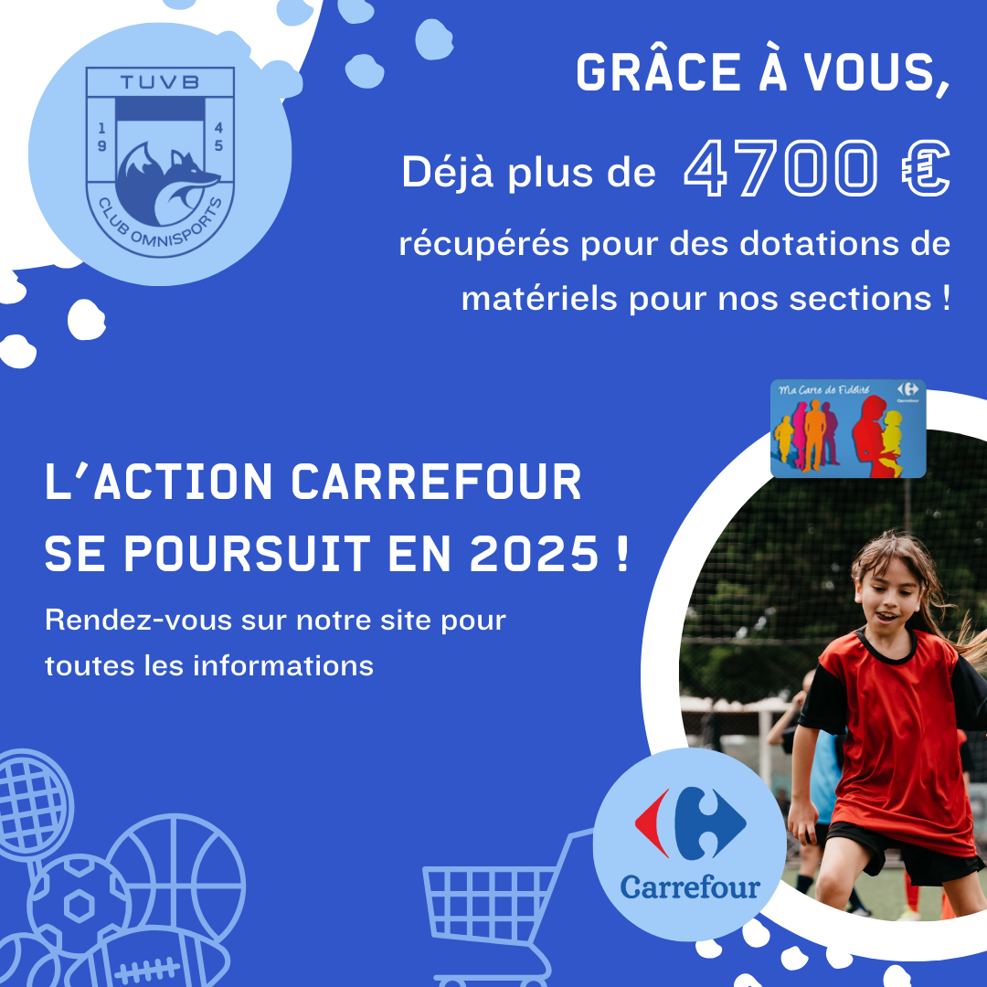 L’action Carrefour se poursuit en 2025 ! Nous comptons sur vous pour continuer de nous aider à gagner du matériel sportif afin d’équiper nos sections.