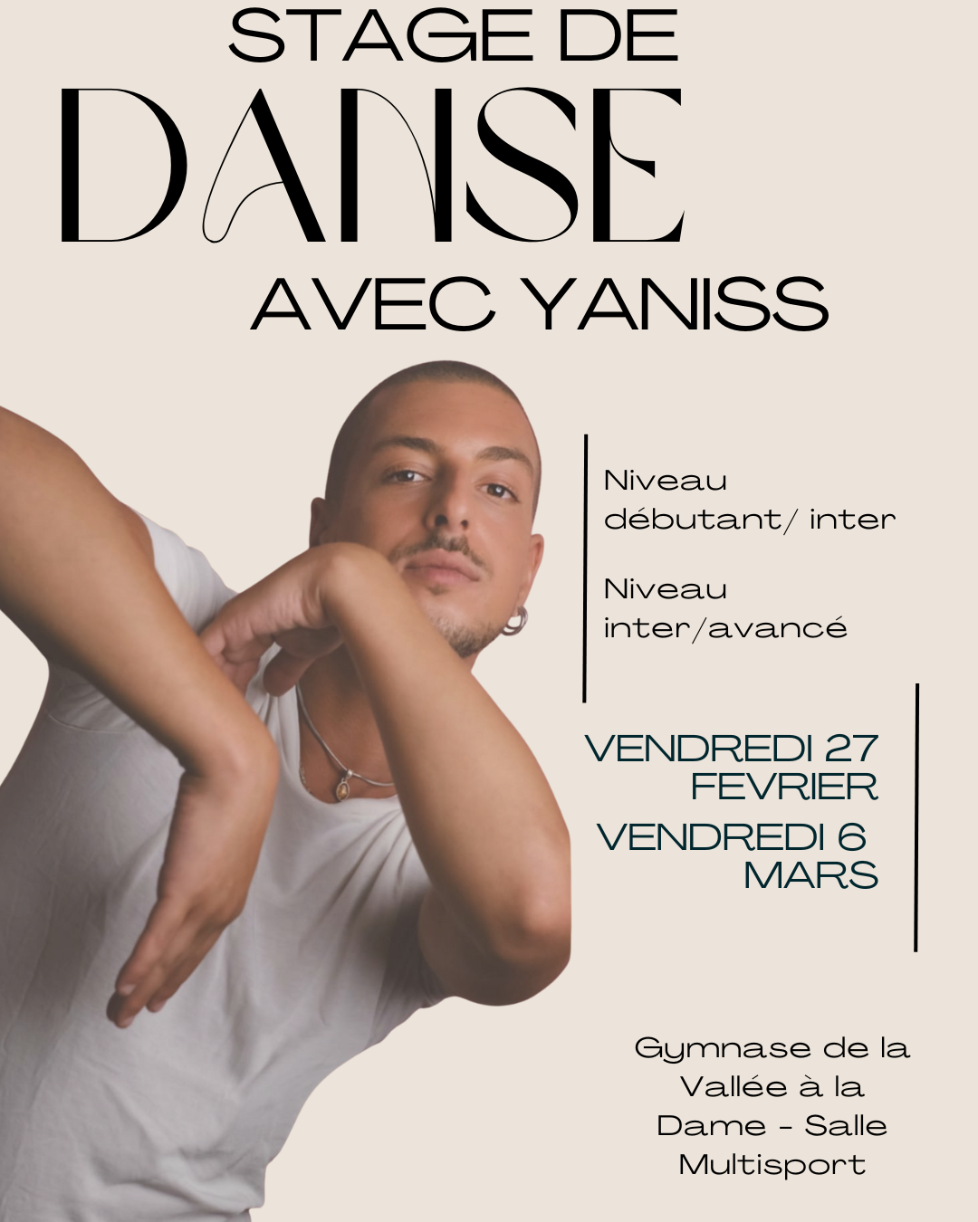 La section Danse organise un stage de danse moderne jazz durant les vacances d'hiver, animé par Yannis. Un moment idéal pour progresser, se challenger et partager une belle énergie autour de la danse !