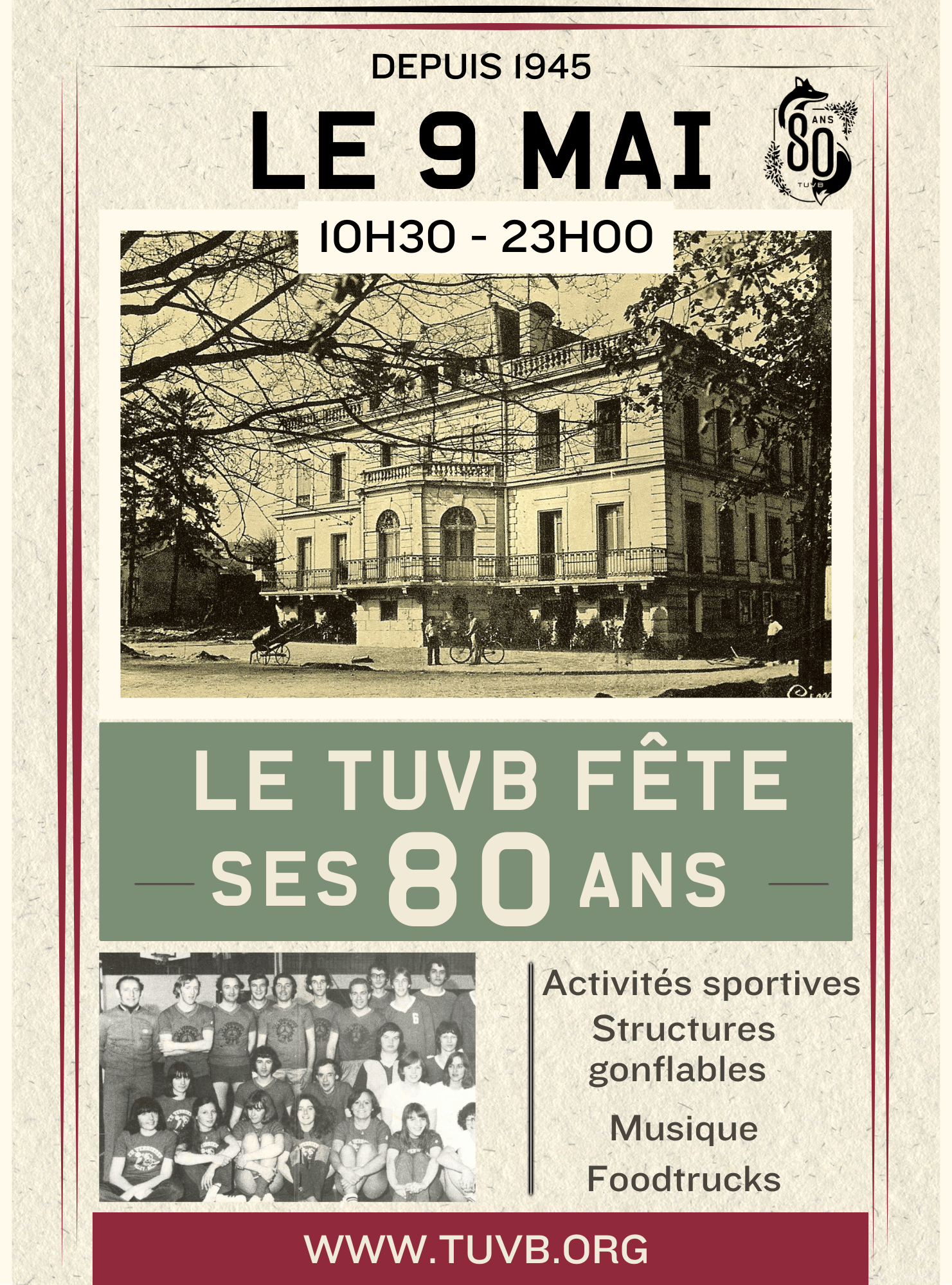 Rendez-vous le samedi 9 mai pour fêter ensemble les 80 ans du TUVB !